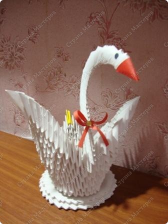 2.Если хочешь сделать белоснежного лебедя с красным клювом, то возьми 458 белых прямоугольников и 1 красный.
